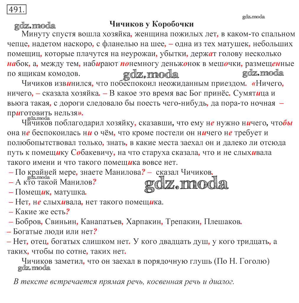 ГДЗ решение к заданию № 491 Русский язык 10-11 классы Греков В.Ф. Просвещение 2016 бесплатно на гдз.мода!