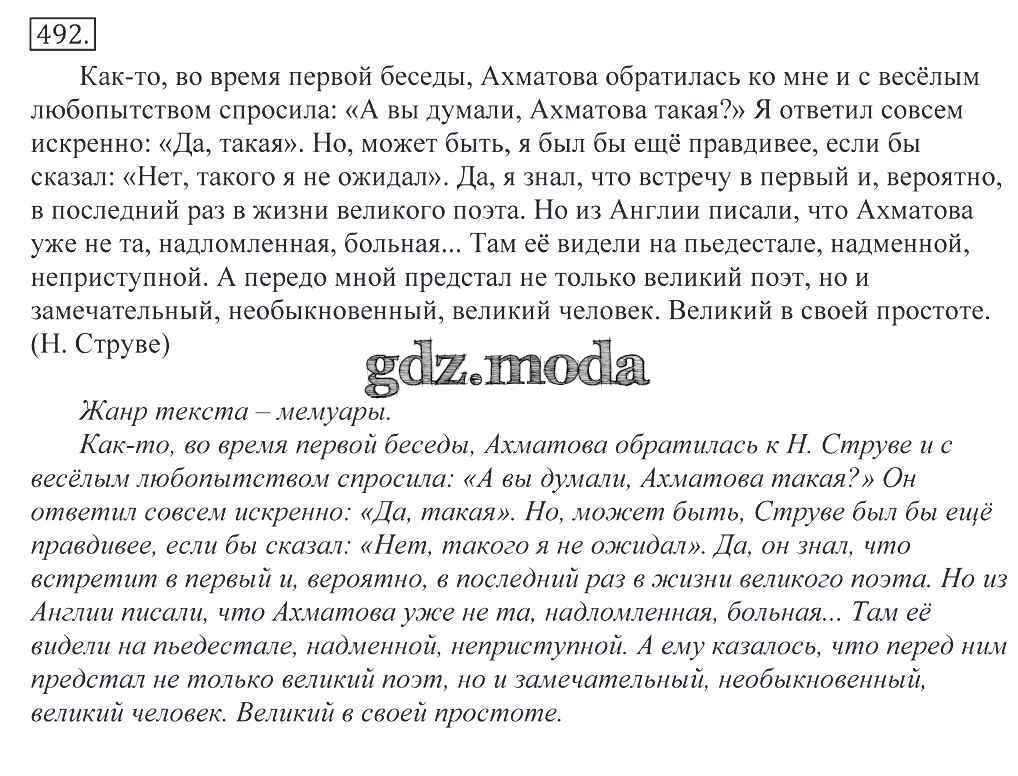ГДЗ решение к заданию № 492 Русский язык 10-11 классы Греков В.Ф. Просвещение 2016 бесплатно на гдз.мода!