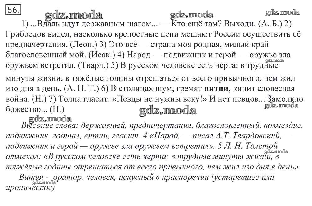 ГДЗ решение к заданию № 56 Русский язык 10-11 классы Греков В.Ф. Просвещение 2016 бесплатно на гдз.мода!