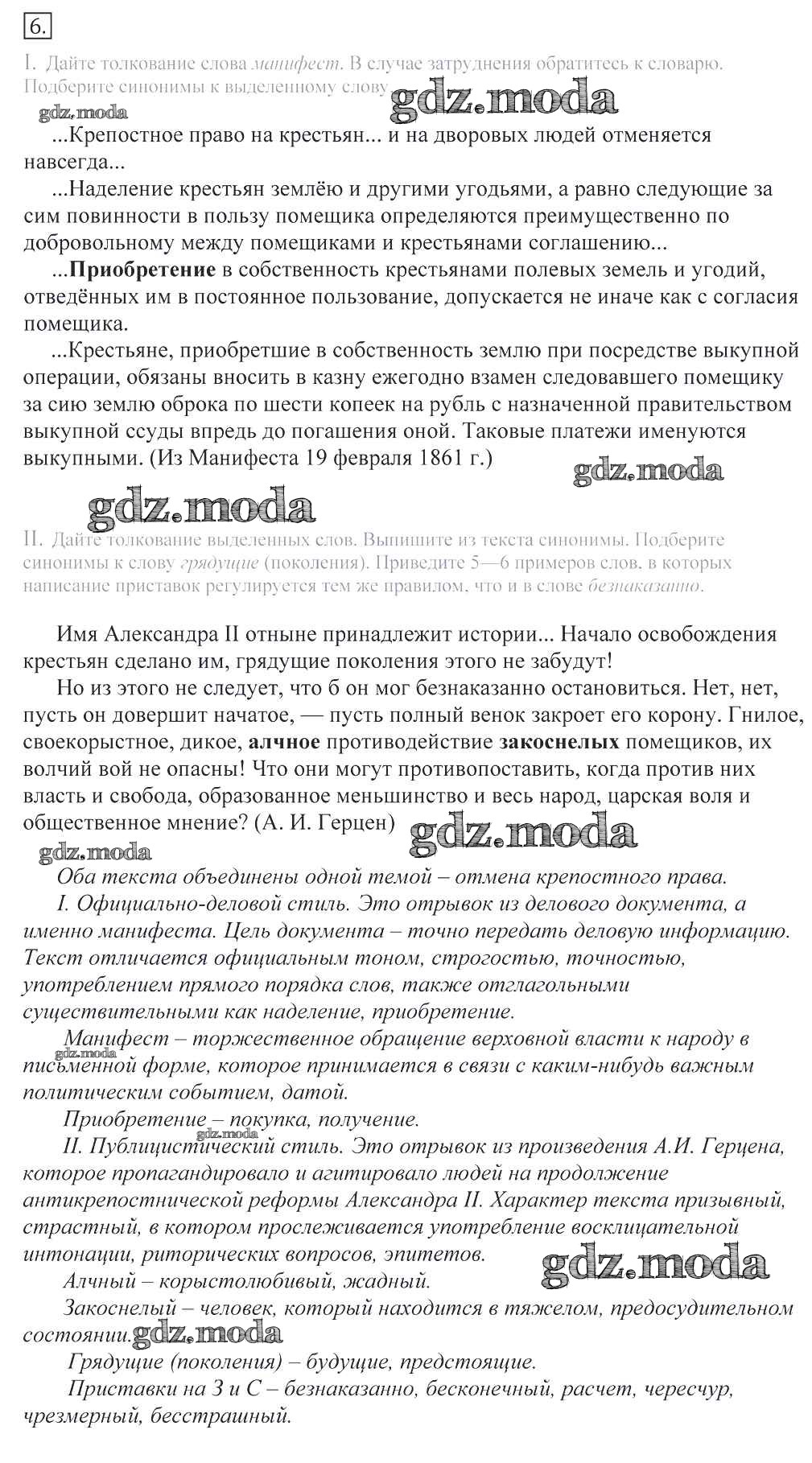 ГДЗ решение к заданию № 6 Русский язык 10-11 классы Греков В.Ф. Просвещение 2016 бесплатно на гдз.мода!