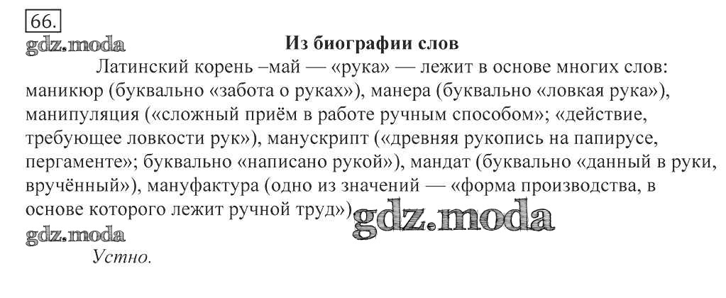 ГДЗ решение к заданию № 66 Русский язык 10-11 классы Греков В.Ф. Просвещение 2016 бесплатно на гдз.мода!
