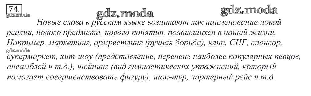 ГДЗ решение к заданию № 74 Русский язык 10-11 классы Греков В.Ф. Просвещение 2016 бесплатно на гдз.мода!