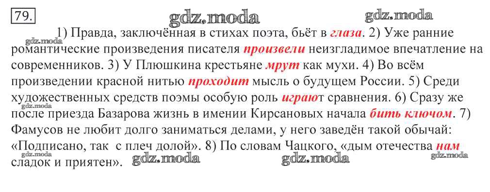 ГДЗ решение к заданию № 79 Русский язык 10-11 классы Греков В.Ф. Просвещение 2016 бесплатно на гдз.мода!