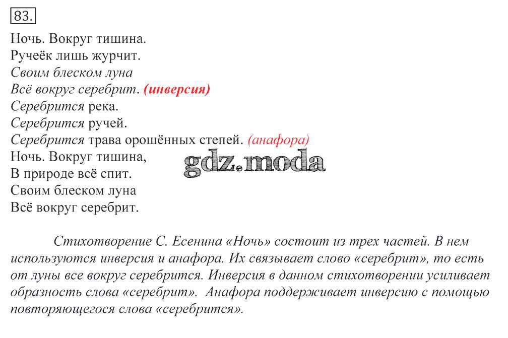 ГДЗ решение к заданию № 83 Русский язык 10-11 классы Греков В.Ф. Просвещение 2016 бесплатно на гдз.мода!