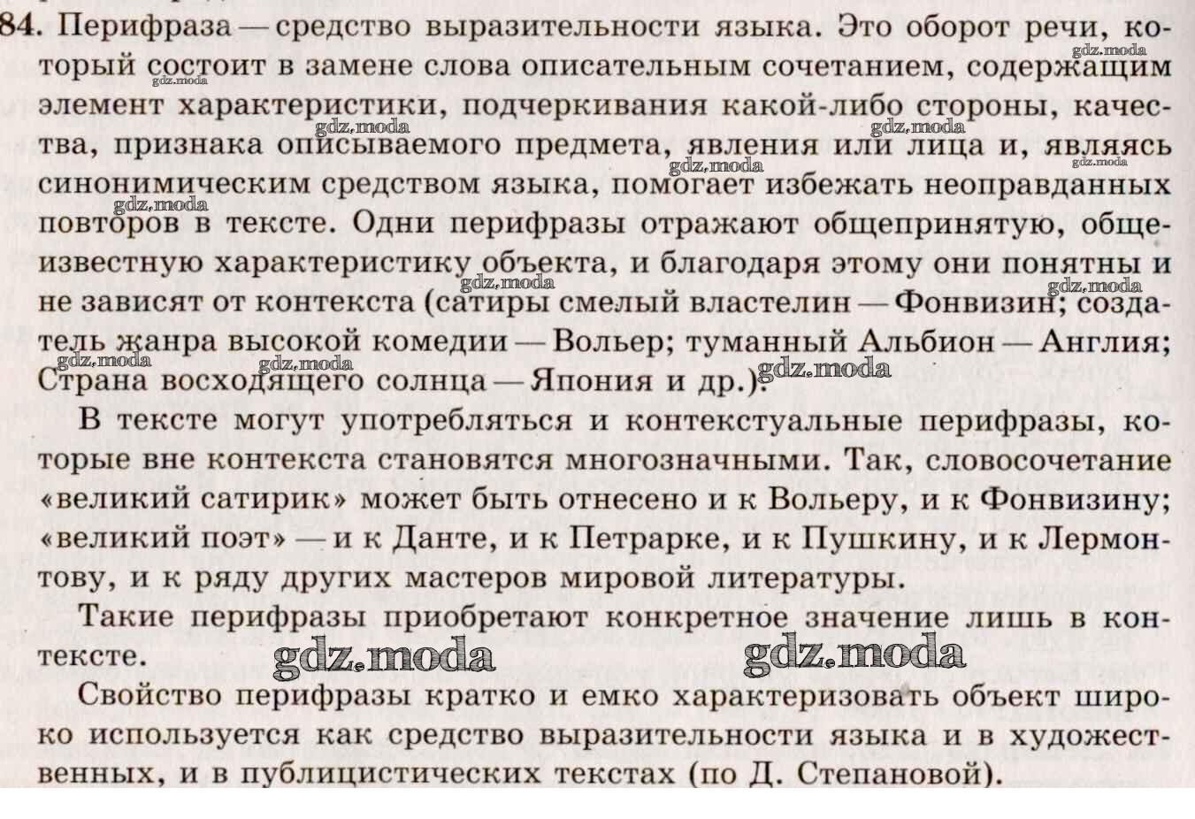 ГДЗ решение к заданию № 84 Русский язык 10-11 классы Греков В.Ф. Просвещение 2016 бесплатно на гдз.мода!