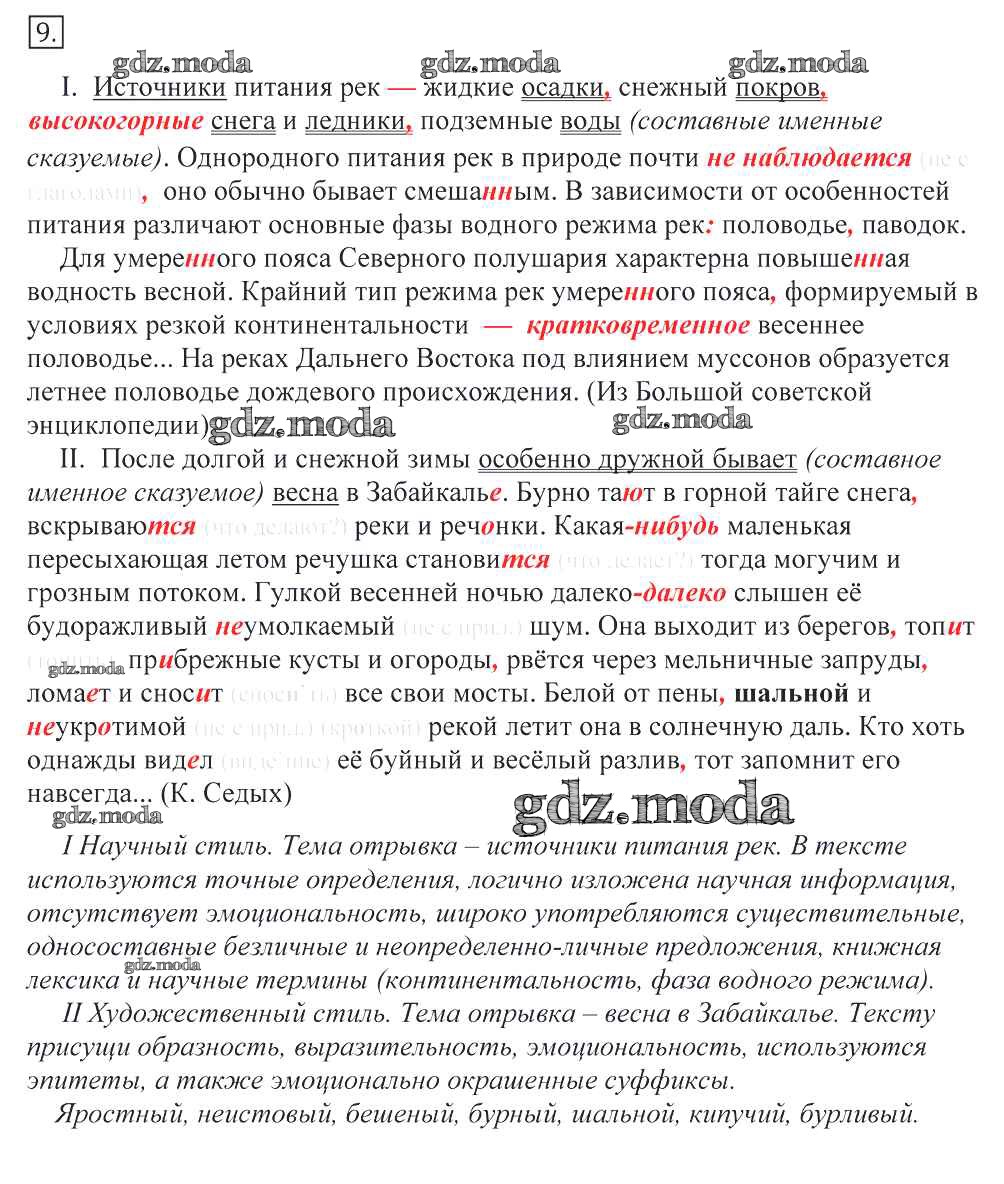ГДЗ решение к заданию № 9 Русский язык 10-11 классы Греков В.Ф. Просвещение 2016 бесплатно на гдз.мода!