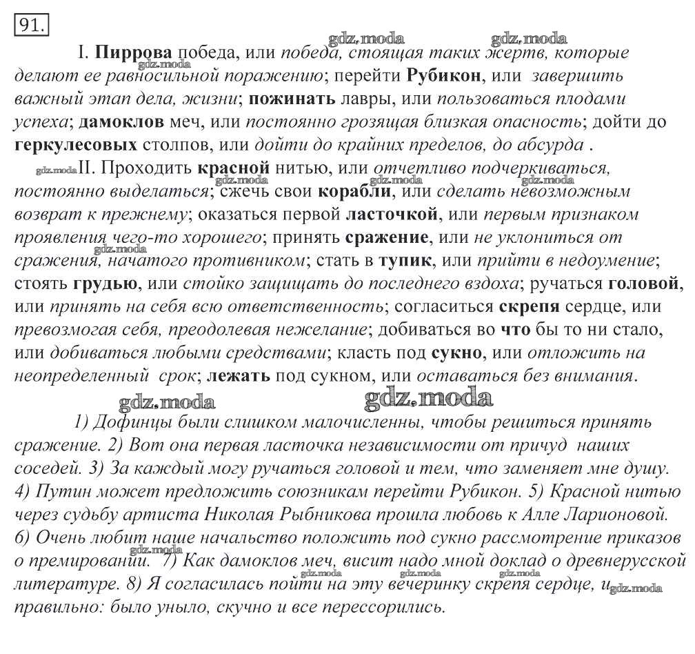 ГДЗ решение к заданию № 91 Русский язык 10-11 классы Греков В.Ф. Просвещение 2016 бесплатно на гдз.мода!