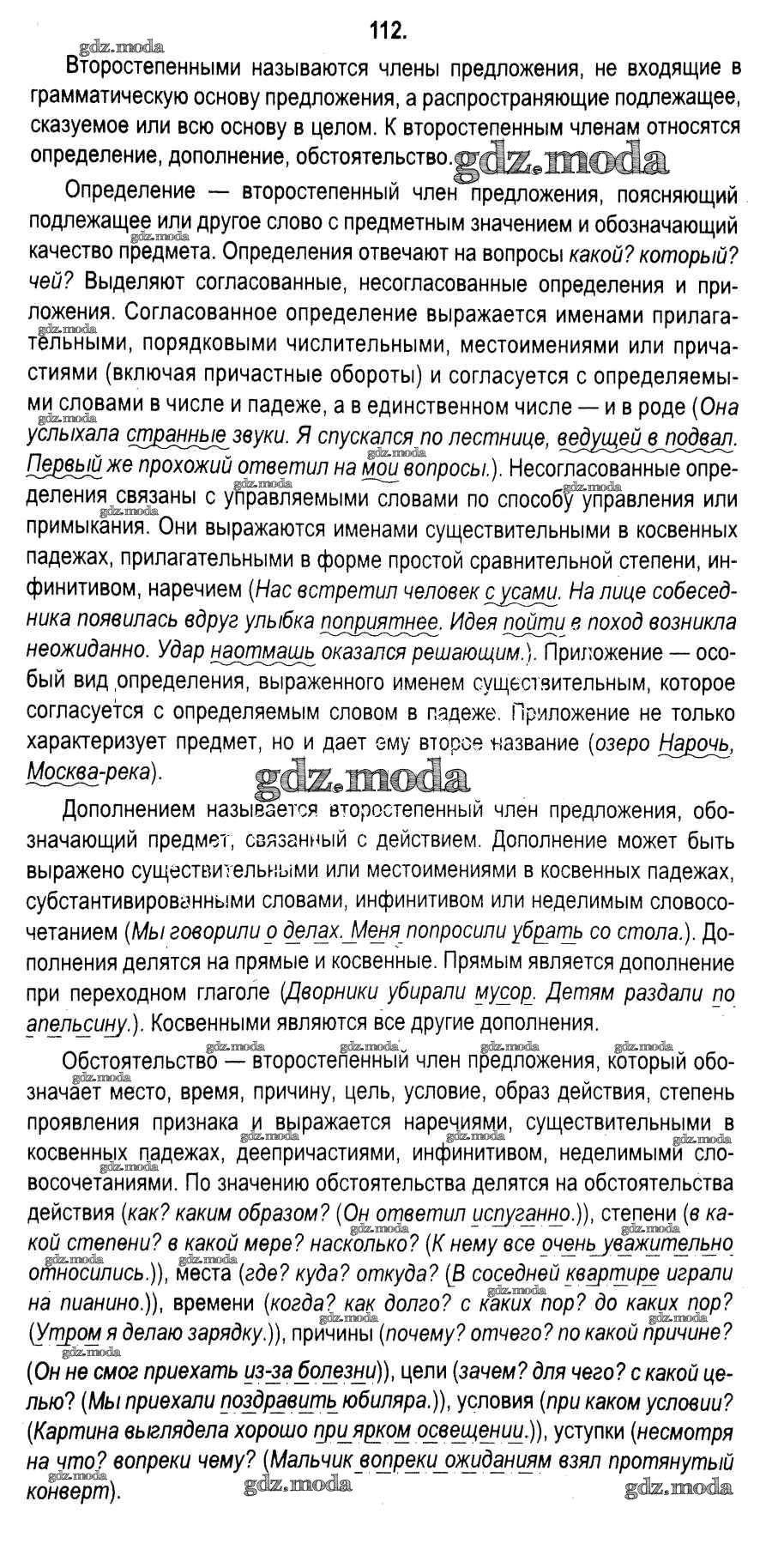 ОТВЕТ на задание № 112 Учебник по Русскому языку 11 класс Мурина