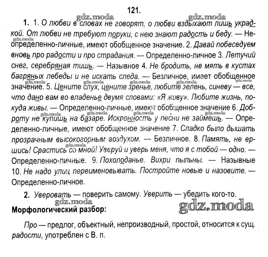 ОТВЕТ на задание № 121 Учебник по Русскому языку 11 класс Мурина