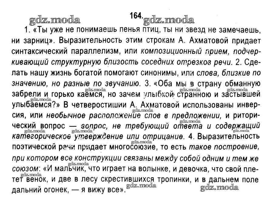 ГДЗ решение к заданию № 164 Русский язык 11 класс Мурина Л.A Национальный институт образования 2017 ФГОС бесплатно на гдз.мода!