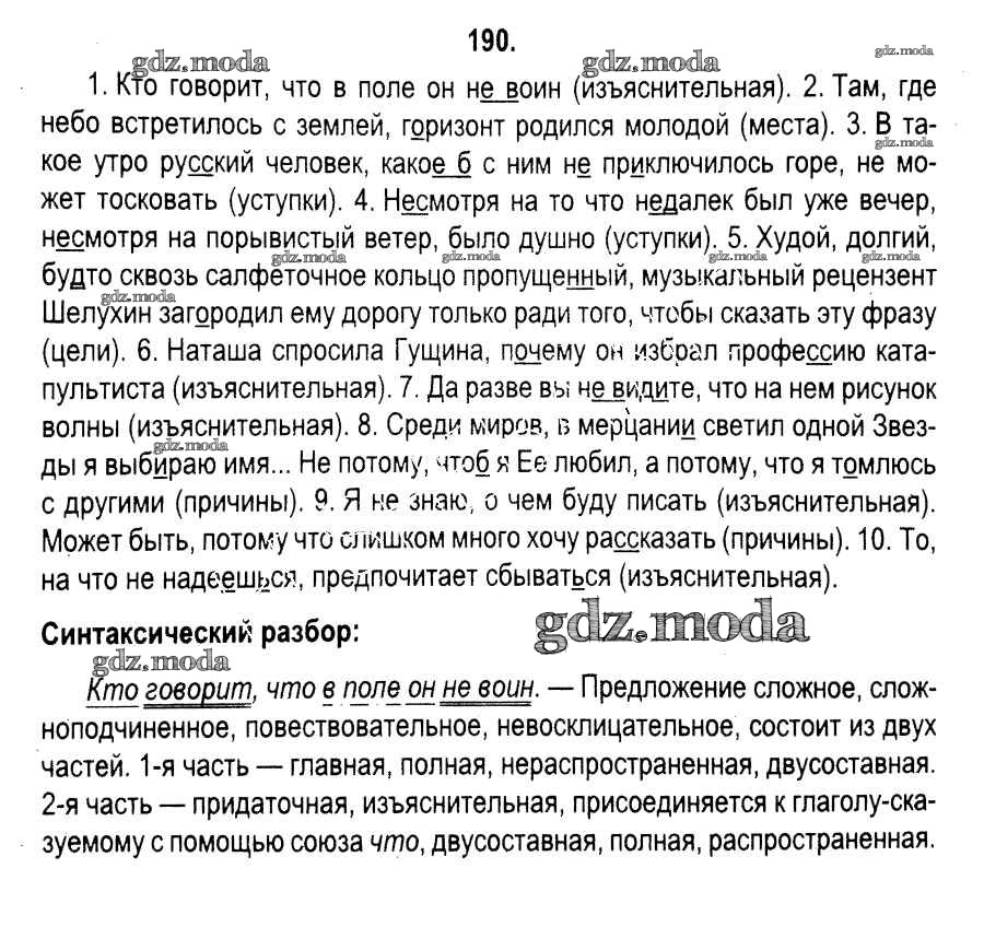 ОТВЕТ на задание № 190 Учебник по Русскому языку 11 класс Мурина
