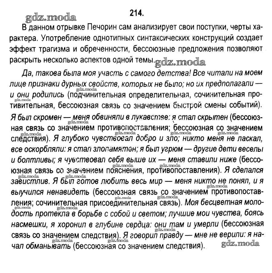 ОТВЕТ на задание № 214 Учебник по Русскому языку 11 класс Мурина