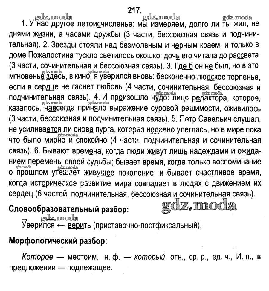 ОТВЕТ на задание № 217 Учебник по Русскому языку 11 класс Мурина