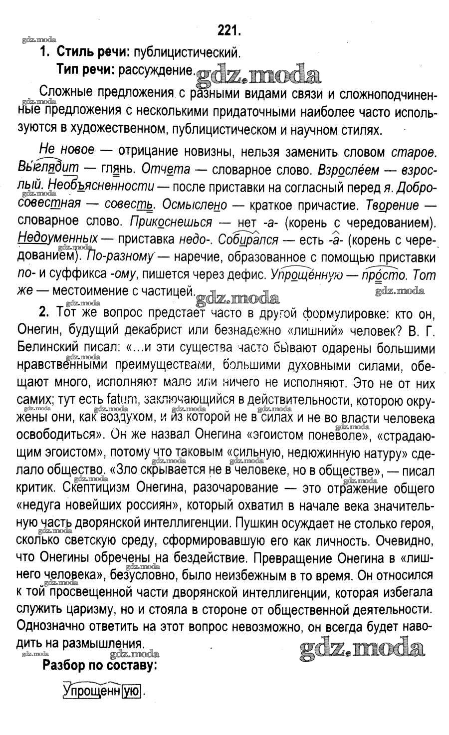 ОТВЕТ на задание № 221 Учебник по Русскому языку 11 класс Мурина