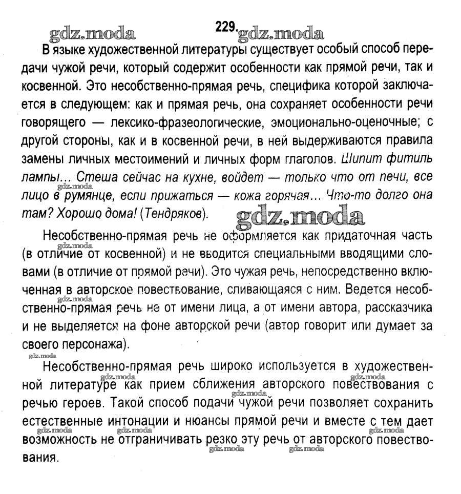 ОТВЕТ на задание № 229 Учебник по Русскому языку 11 класс Мурина