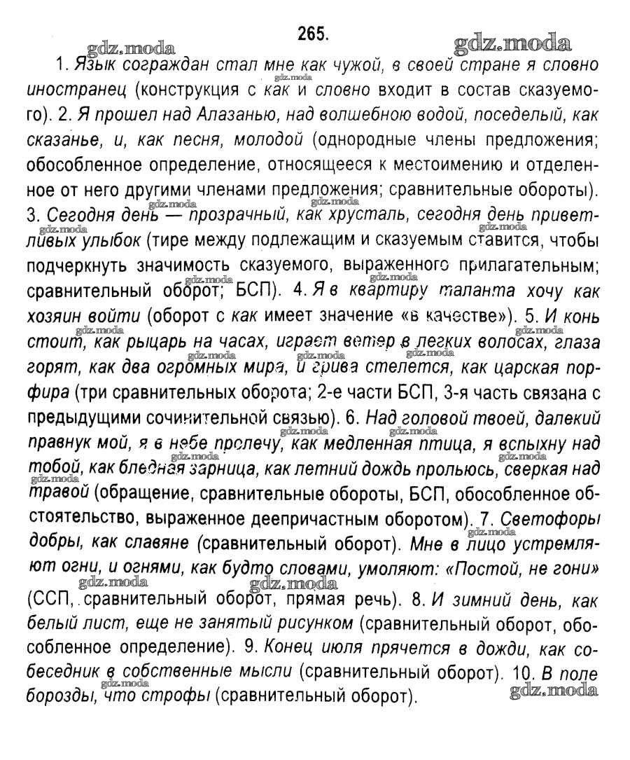 ОТВЕТ на задание № 265 Учебник по Русскому языку 11 класс Мурина