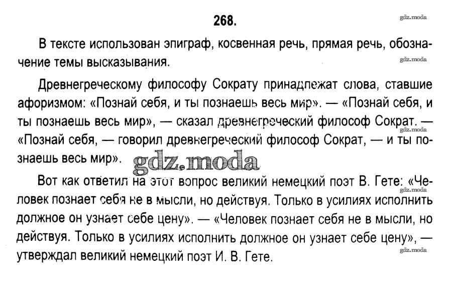 ОТВЕТ на задание № 268 Учебник по Русскому языку 11 класс Мурина