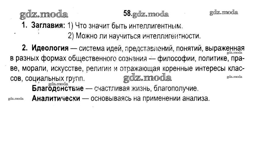 ГДЗ решение к заданию № 58 Русский язык 11 класс Мурина Л.A Национальный институт образования 2017 ФГОС бесплатно на гдз.мода!