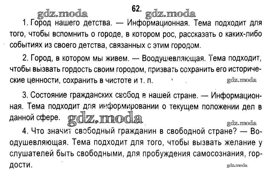 ГДЗ решение к заданию № 62 Русский язык 11 класс Мурина Л.A Национальный институт образования 2017 ФГОС бесплатно на гдз.мода!