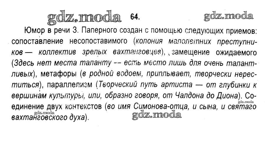 ОТВЕТ на задание № 64 Учебник по Русскому языку 11 класс Мурина