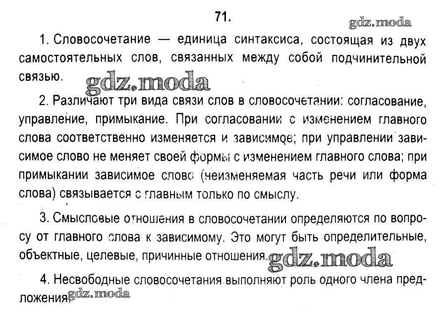 ОТВЕТ на задание № 71 Учебник по Русскому языку 11 класс Мурина