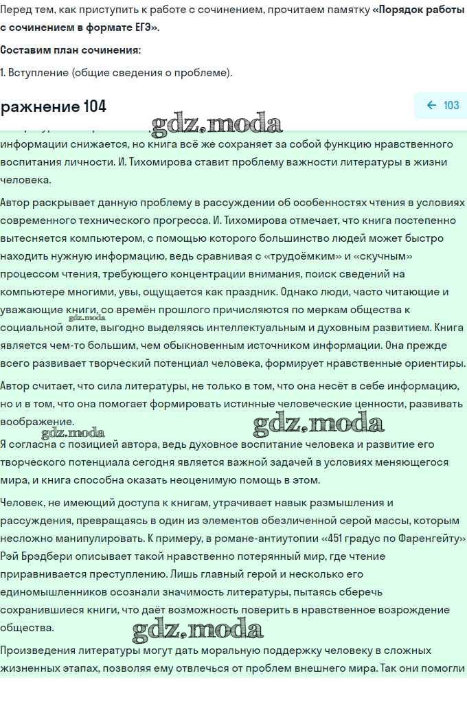 ГДЗ решение к заданию № 104 Русский язык 11 класс Гусарова И.В. Просвещение 2022 Базовый и углубленный уровень ФГОС бесплатно на гдз.мода!