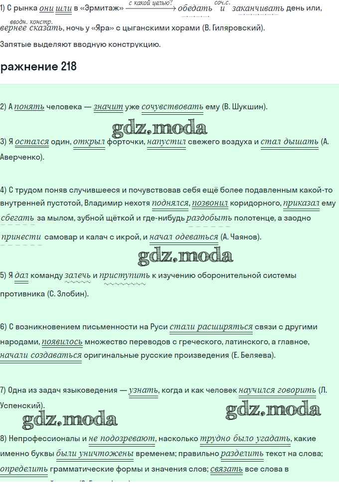 ГДЗ решение к заданию № 218 Русский язык 11 класс Гусарова И.В. Просвещение 2022 Базовый и углубленный уровень ФГОС бесплатно на гдз.мода!