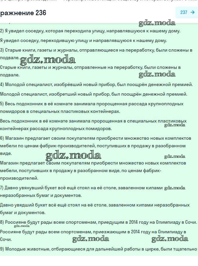 ОТВЕТ на задание № 236 Учебник по Русскому языку 11 класс Гусарова Базовый и углубленный уровень