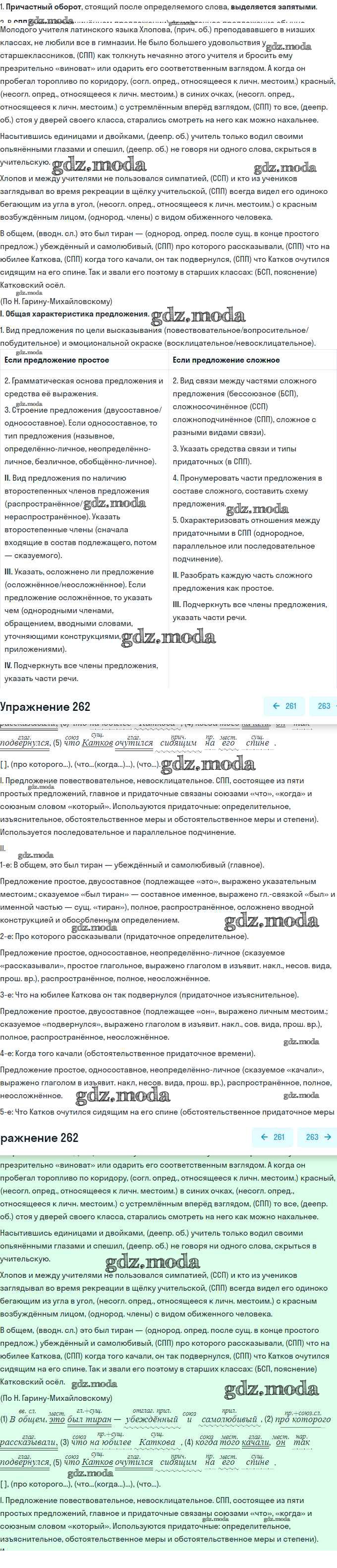 ГДЗ решение к заданию № 262 Русский язык 11 класс Гусарова И.В. Просвещение 2022 Базовый и углубленный уровень ФГОС бесплатно на гдз.мода!