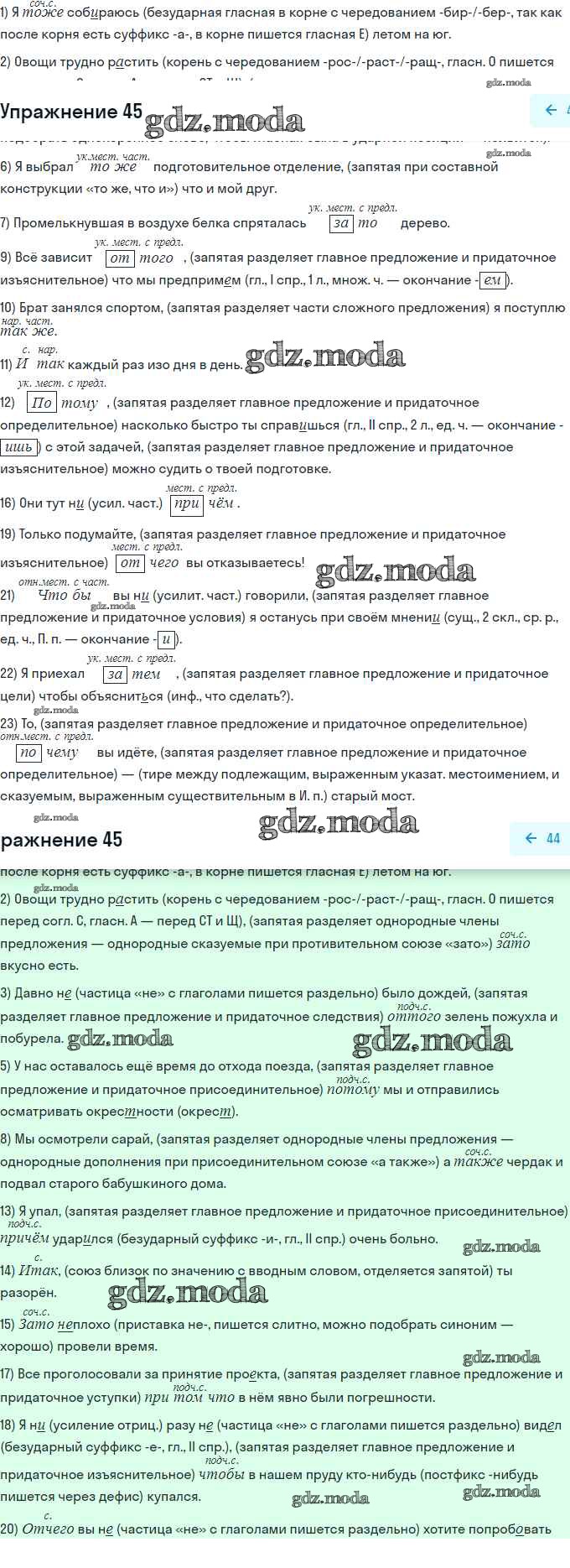 ГДЗ решение к заданию № 45 Русский язык 11 класс Гусарова И.В. Просвещение 2022 Базовый и углубленный уровень ФГОС бесплатно на гдз.мода!