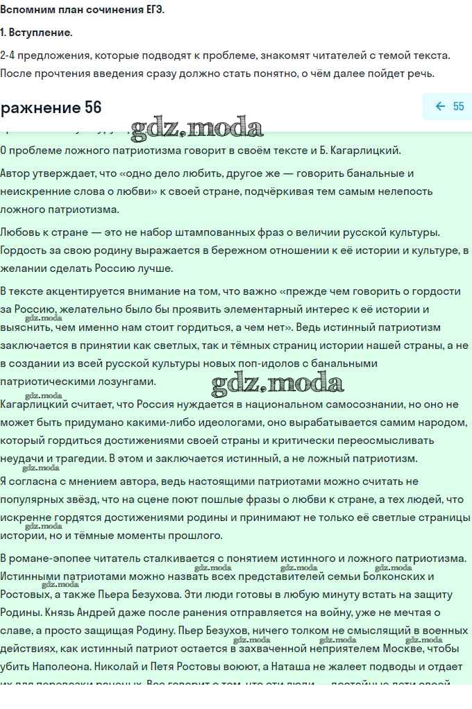 ГДЗ решение к заданию № 56 Русский язык 11 класс Гусарова И.В. Просвещение 2022 Базовый и углубленный уровень ФГОС бесплатно на гдз.мода!