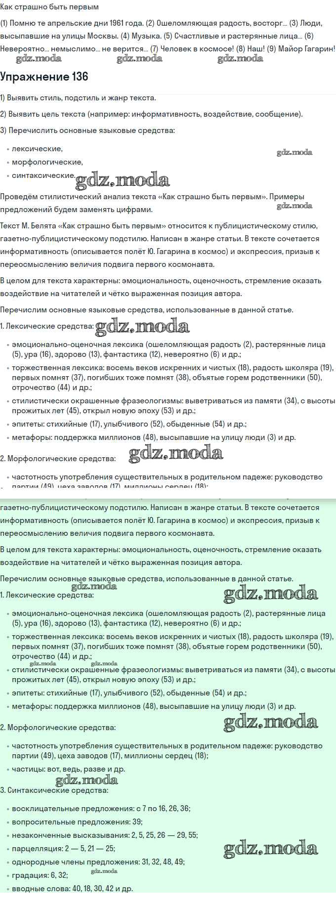 ГДЗ решение к заданию № 136 Русский язык 11 класс Львова С.И. Мнемозина 2016 Базовый и углубленный уровень ФГОС бесплатно на гдз.мода!