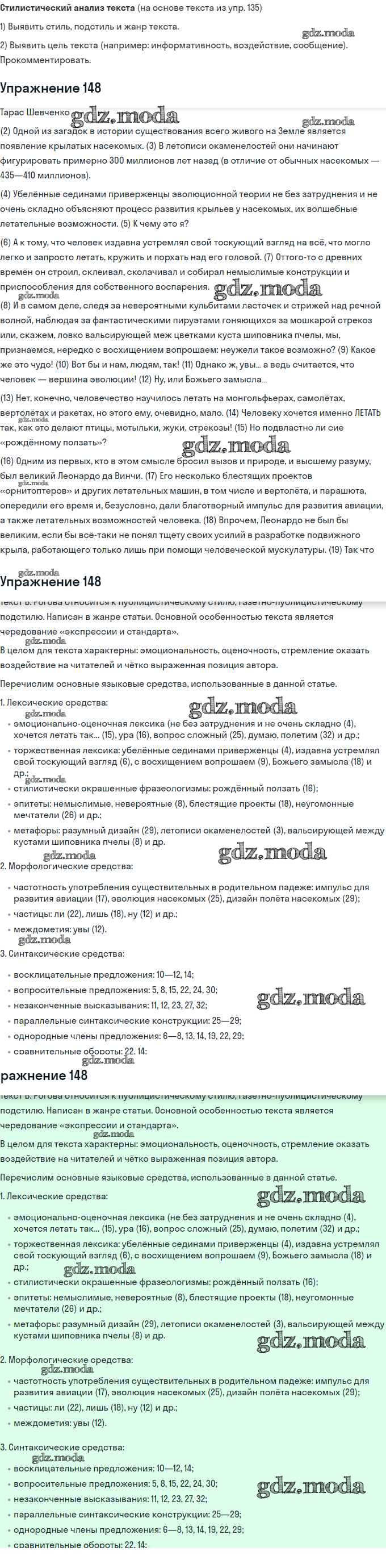 ГДЗ решение к заданию № 148 Русский язык 11 класс Львова С.И. Мнемозина 2016 Базовый и углубленный уровень ФГОС бесплатно на гдз.мода!