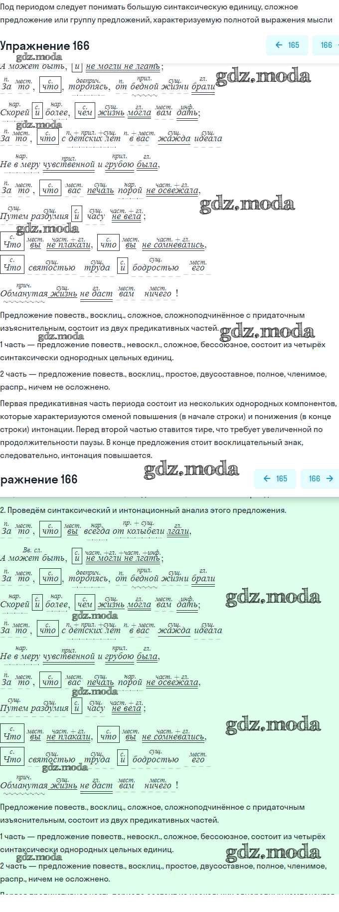 ГДЗ решение к заданию № 166 Русский язык 11 класс Львова С.И. Мнемозина 2016 Базовый и углубленный уровень ФГОС бесплатно на гдз.мода!