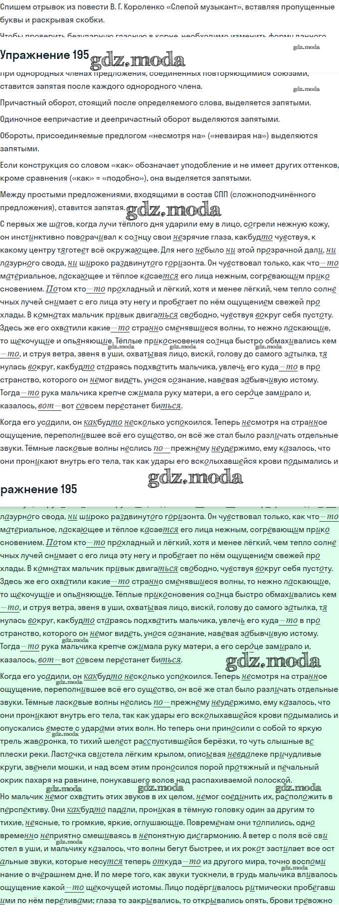 ГДЗ решение к заданию № 195 Русский язык 11 класс Львова С.И. Мнемозина 2016 Базовый и углубленный уровень ФГОС бесплатно на гдз.мода!