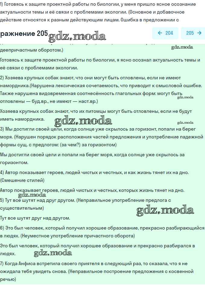 ГДЗ решение к заданию № 205 Русский язык 11 класс Львова С.И. Мнемозина 2016 Базовый и углубленный уровень ФГОС бесплатно на гдз.мода!