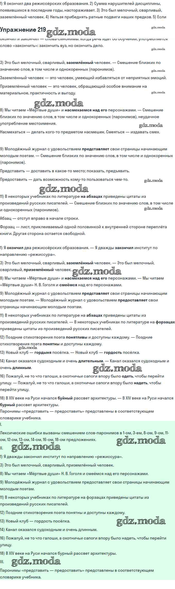 ГДЗ решение к заданию № 219 Русский язык 11 класс Львова С.И. Мнемозина 2016 Базовый и углубленный уровень ФГОС бесплатно на гдз.мода!