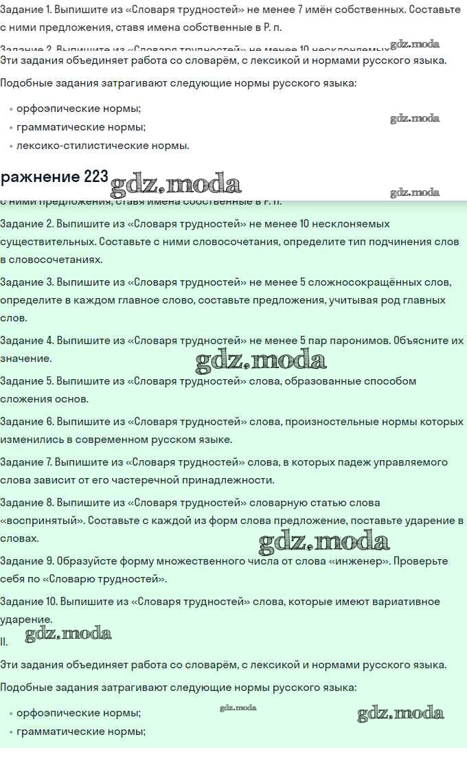 ГДЗ решение к заданию № 223 Русский язык 11 класс Львова С.И. Мнемозина 2016 Базовый и углубленный уровень ФГОС бесплатно на гдз.мода!