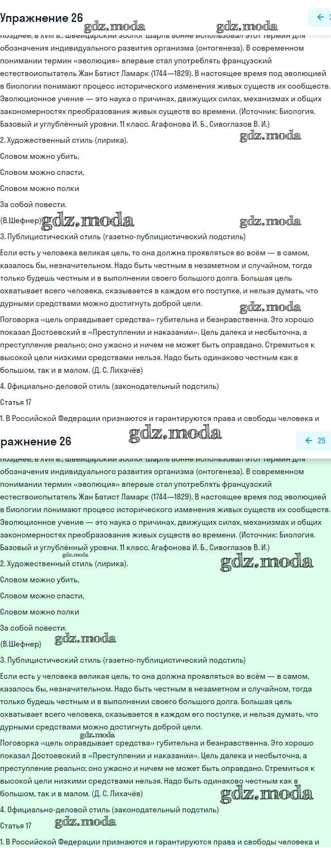 ГДЗ решение к заданию № 26 Русский язык 11 класс Львова С.И. Мнемозина 2016 Базовый и углубленный уровень ФГОС бесплатно на гдз.мода!