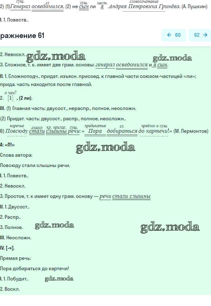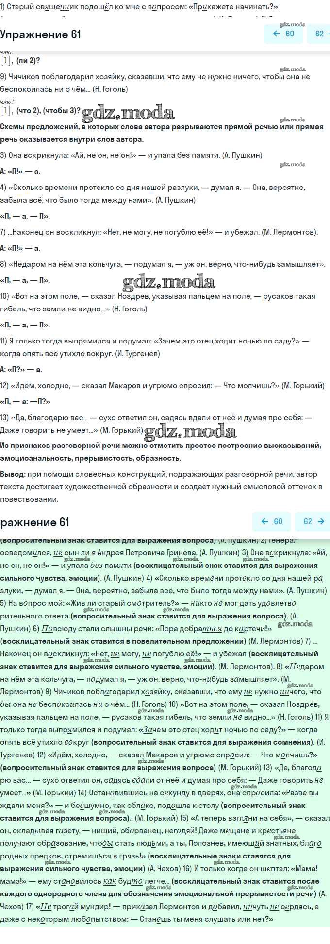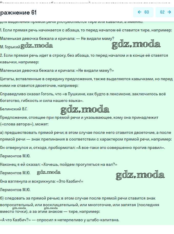 ГДЗ решение к заданию № 61 Русский язык 11 класс Львова С.И. Мнемозина 2016 Базовый и углубленный уровень ФГОС бесплатно на гдз.мода!