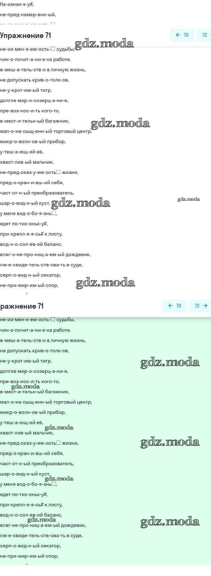 ГДЗ решение к заданию № 71 Русский язык 11 класс Львова С.И. Мнемозина 2016 Базовый и углубленный уровень ФГОС бесплатно на гдз.мода!