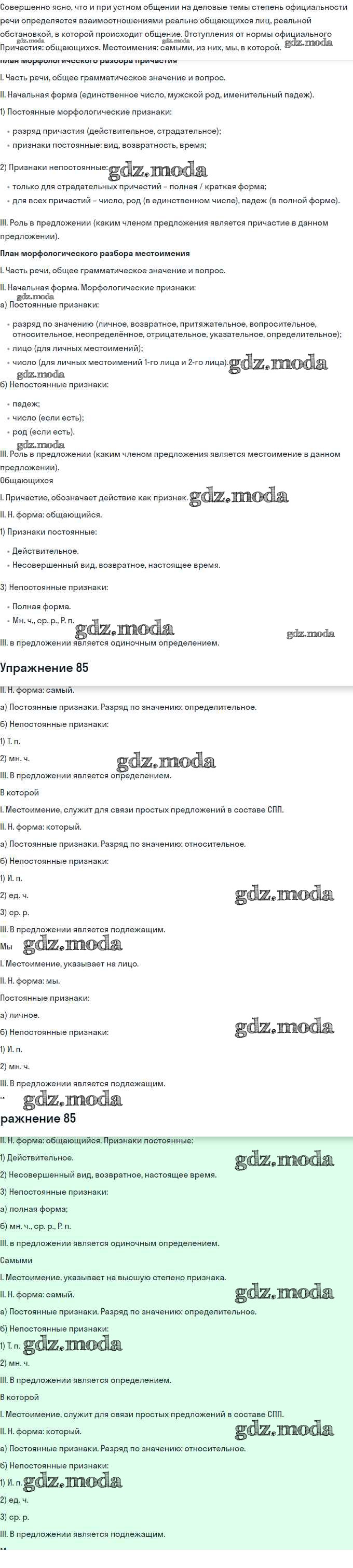 ГДЗ решение к заданию № 85 Русский язык 11 класс Львова С.И. Мнемозина 2016 Базовый и углубленный уровень ФГОС бесплатно на гдз.мода!