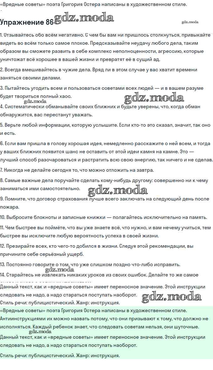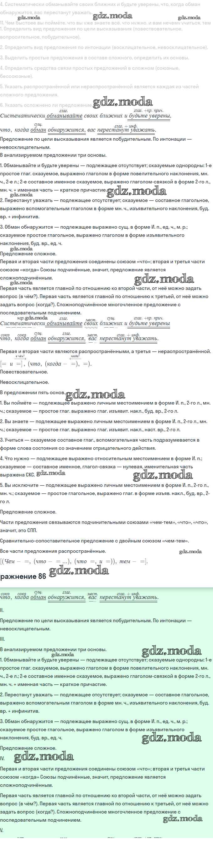ГДЗ решение к заданию № 86 Русский язык 11 класс Львова С.И. Мнемозина 2016 Базовый и углубленный уровень ФГОС бесплатно на гдз.мода!