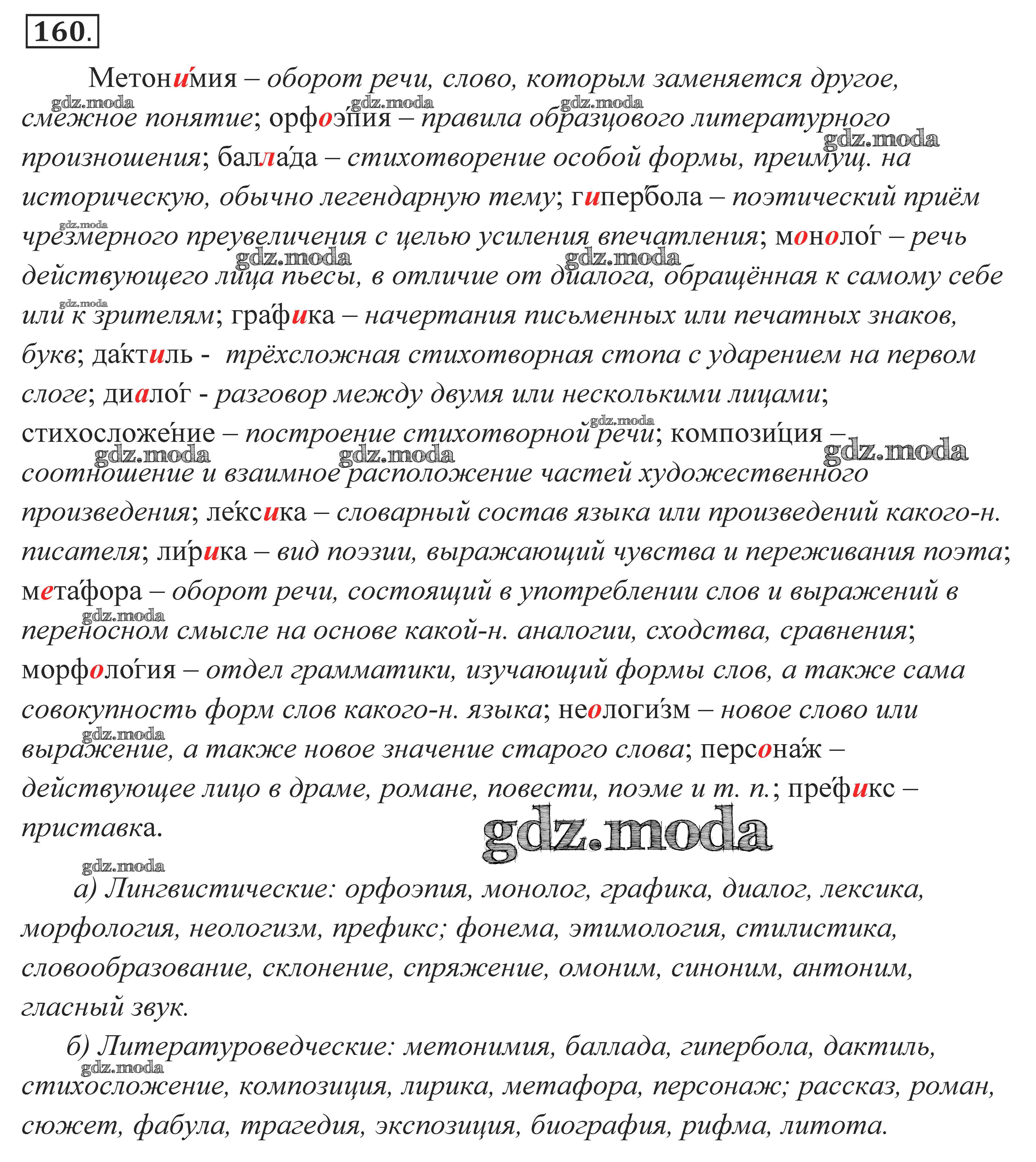ГДЗ решение к заданию № 160 Русский язык 10-11 класс Власенков А.И. Просвещение 2014 Базовый уровень бесплатно на гдз.мода!