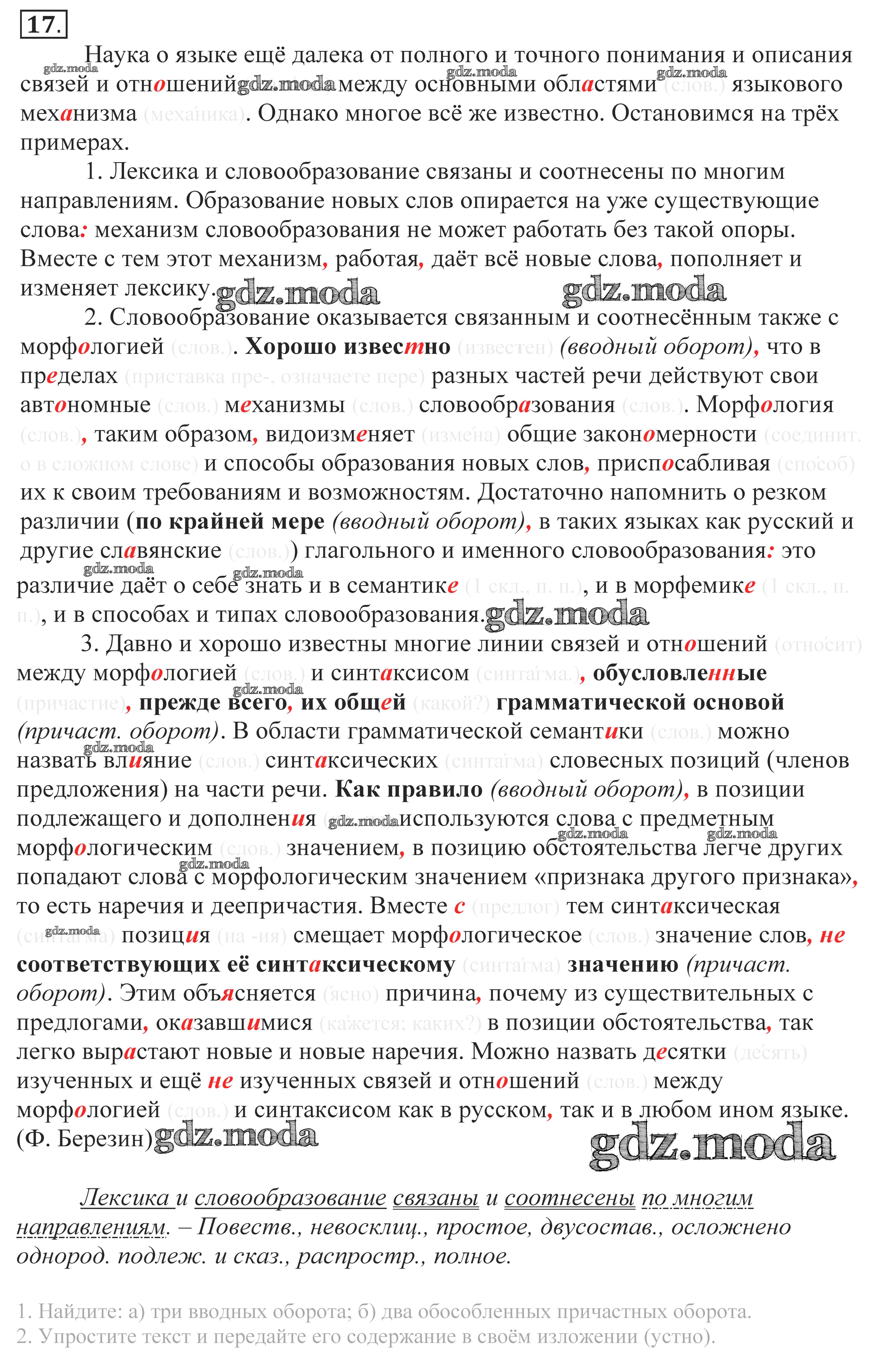 ГДЗ решение к заданию № 17 Русский язык 10-11 класс Власенков А.И. Просвещение 2014 Базовый уровень бесплатно на гдз.мода!