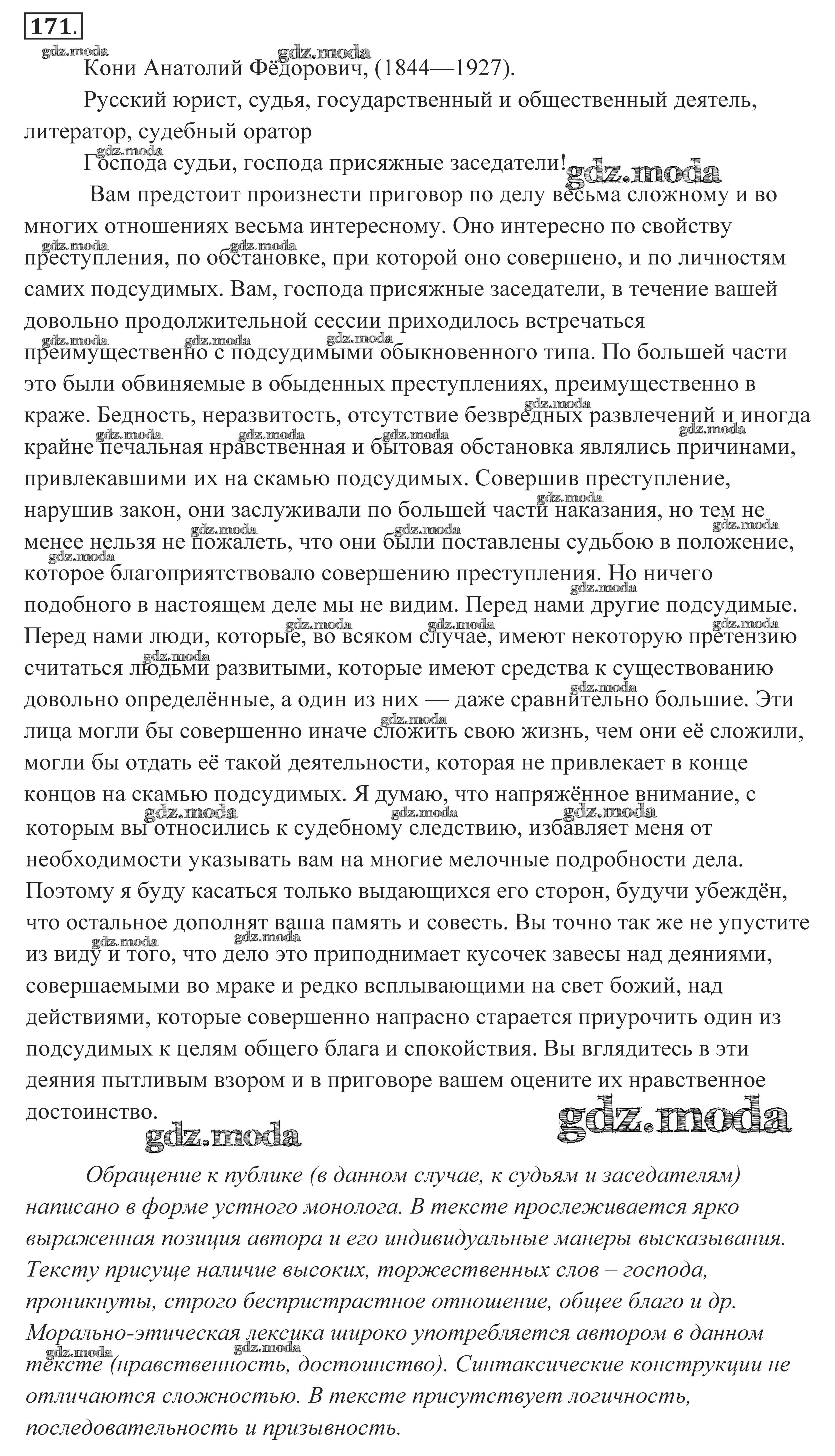 ОТВЕТ на задание № 171 Учебник по Русскому языку 10-11 класс Власенков Базовый уровень