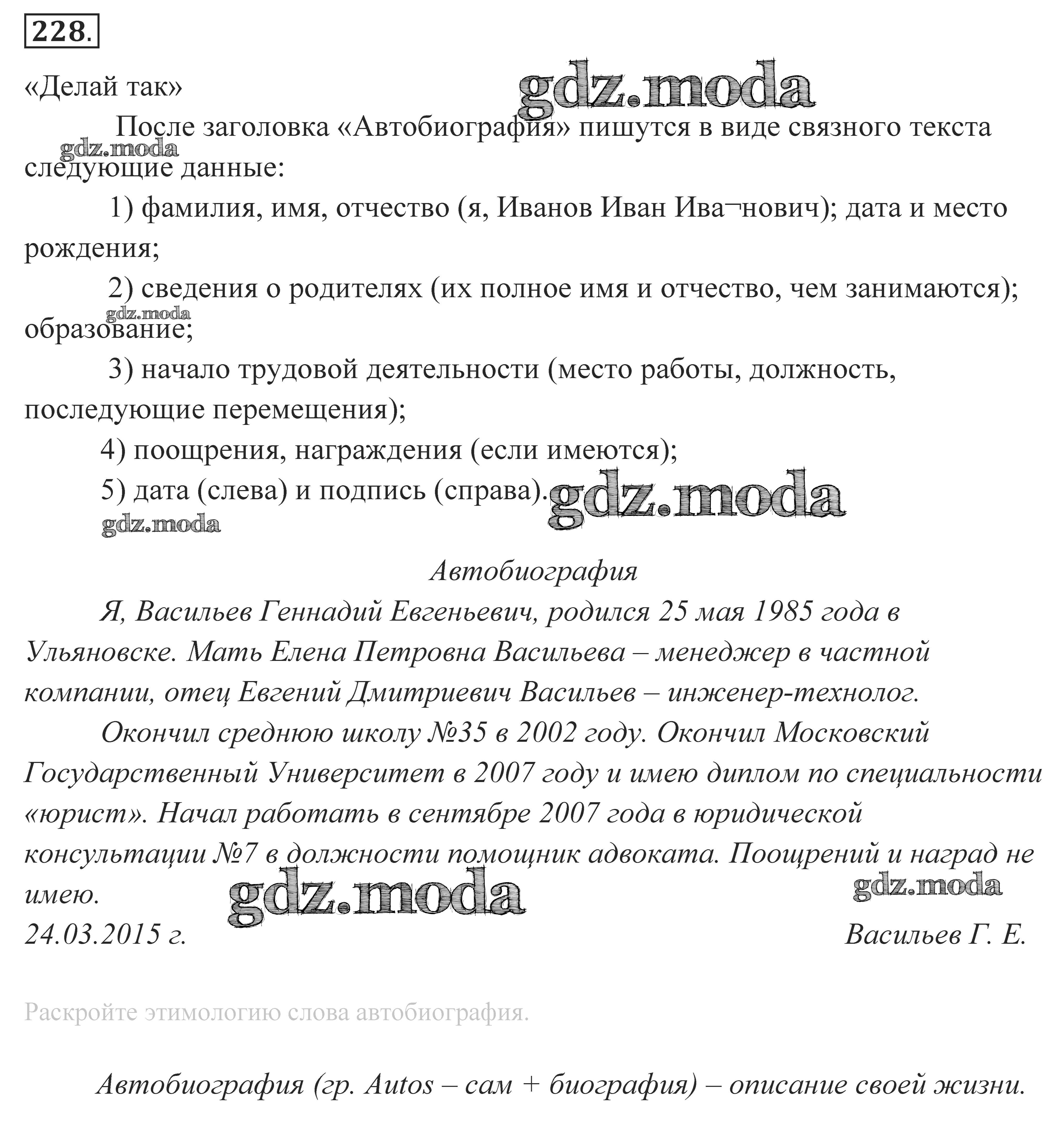 ГДЗ решение к заданию № 228 Русский язык 10-11 класс Власенков А.И. Просвещение 2014 Базовый уровень бесплатно на гдз.мода!