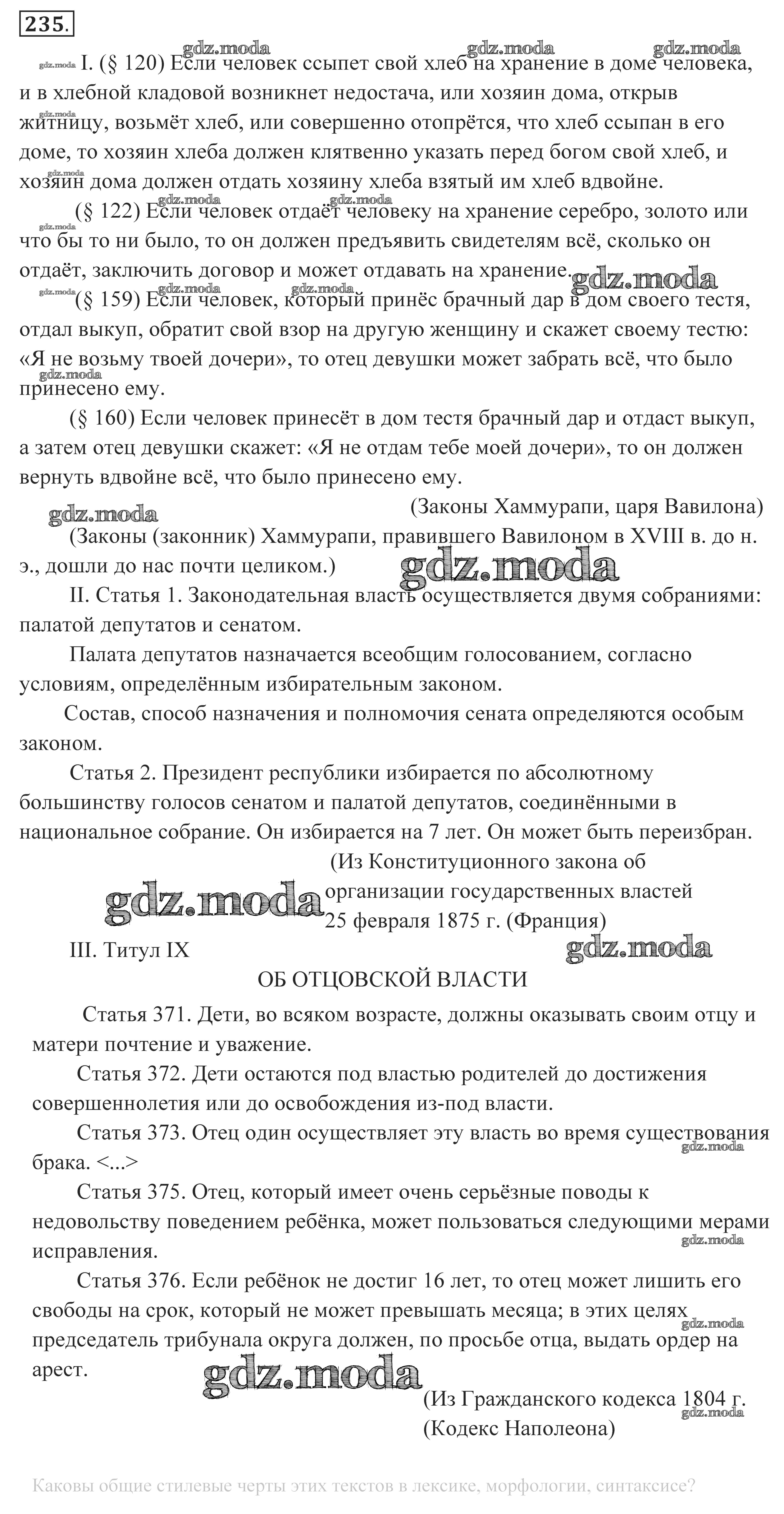 ГДЗ решение к заданию № 235 Русский язык 10-11 класс Власенков А.И. Просвещение 2014 Базовый уровень бесплатно на гдз.мода!
