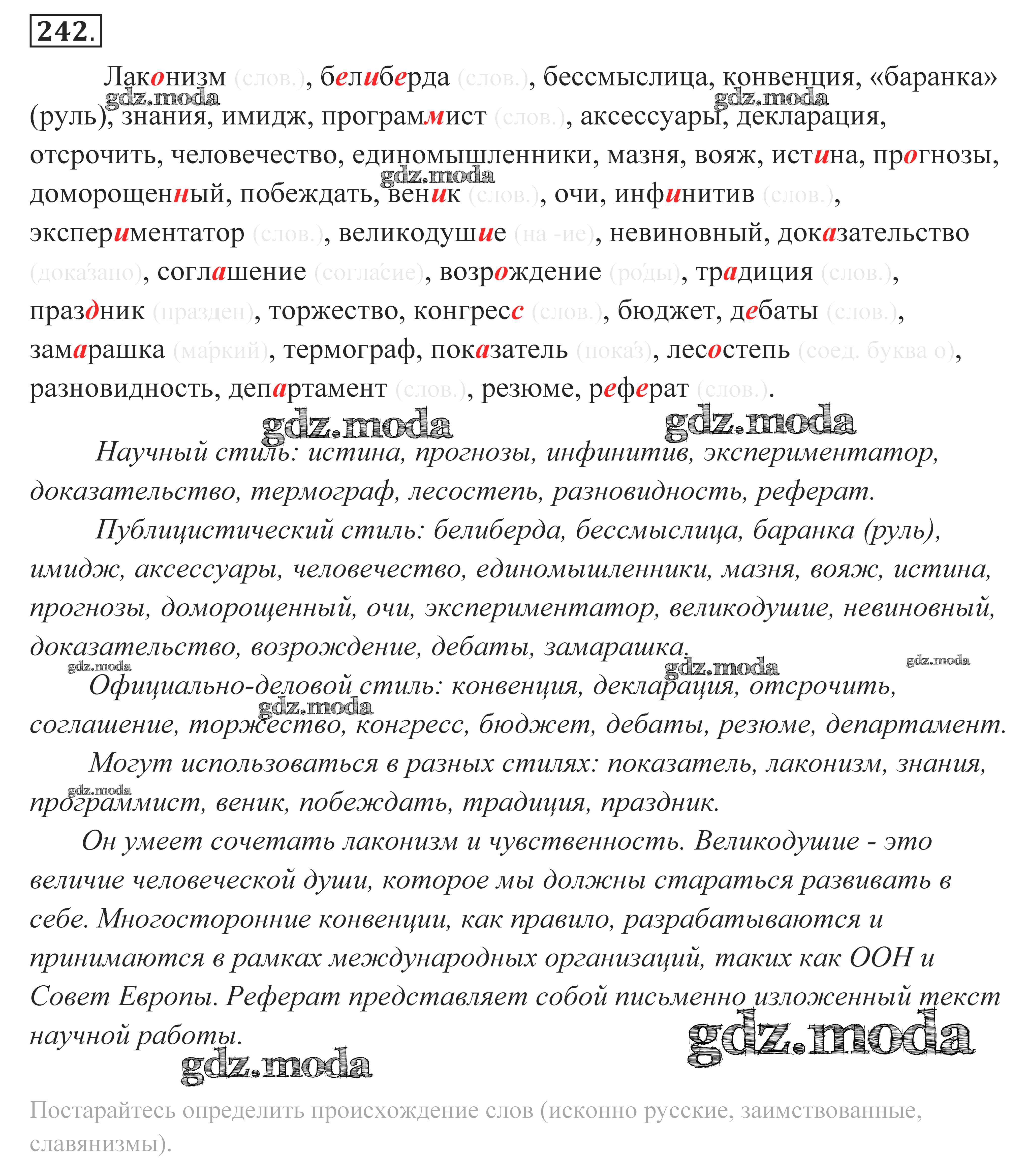 ГДЗ решение к заданию № 242 Русский язык 10-11 класс Власенков А.И. Просвещение 2014 Базовый уровень бесплатно на гдз.мода!