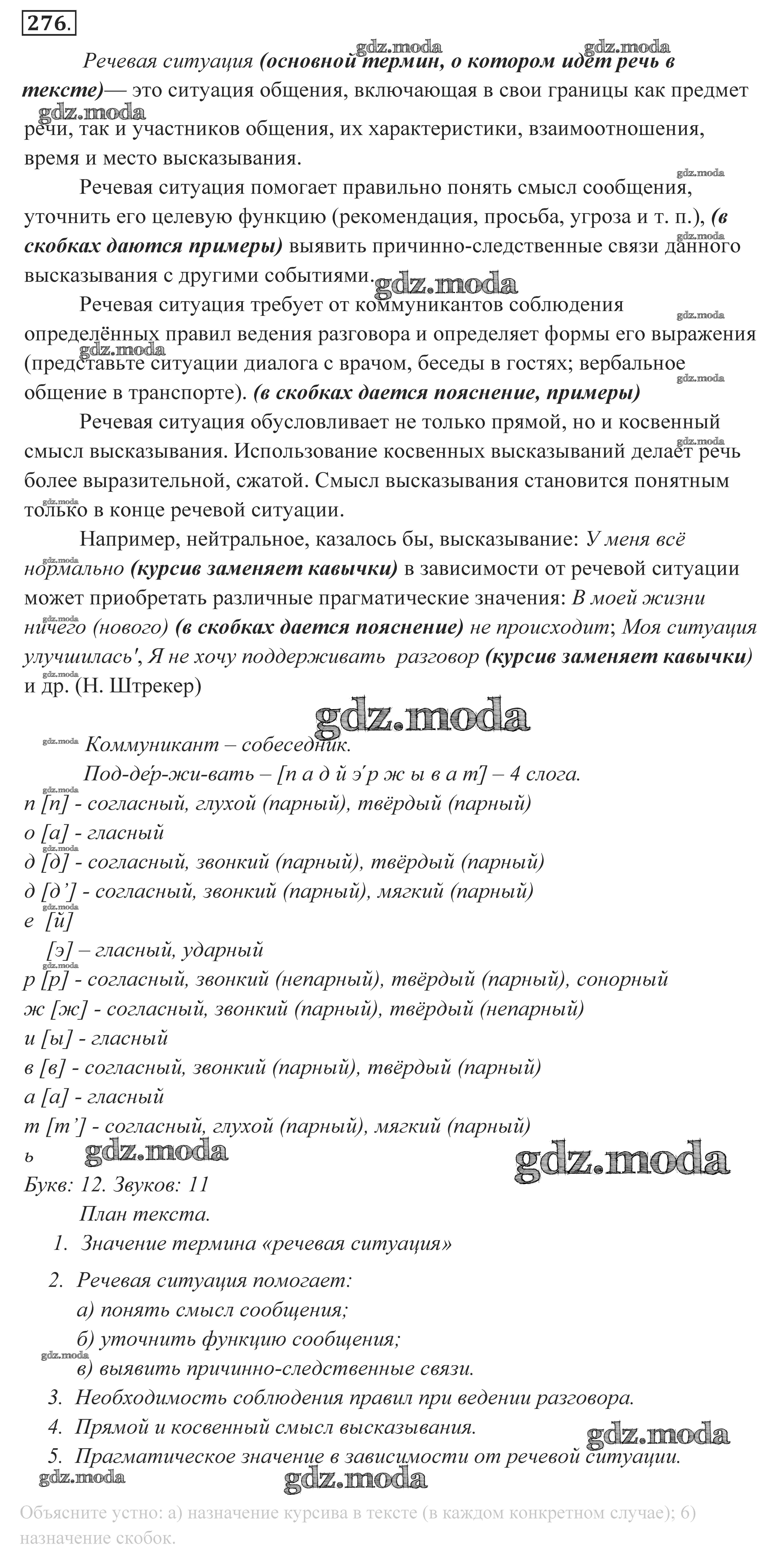 ГДЗ решение к заданию № 276 Русский язык 10-11 класс Власенков А.И. Просвещение 2014 Базовый уровень бесплатно на гдз.мода!